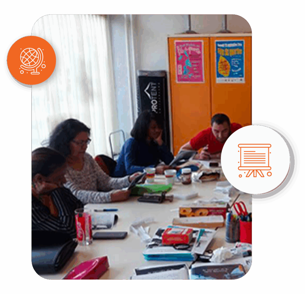 est née en 2012 de l’idée de donner aux migrantes et aux migrants un espace pour se rencontrer en apprenant. A travers des activités qui ne se cantonnent pas uniquement à des cours à l’intérieur de la classe, K@yu cherche à élargir le contexte d’utilisation de la langue d’accueil. Les cours de français, mais aussi d’espagnol, tendent à établir des ponts entre différentes cultures, générations et expériences.